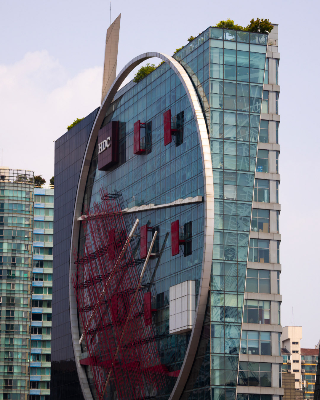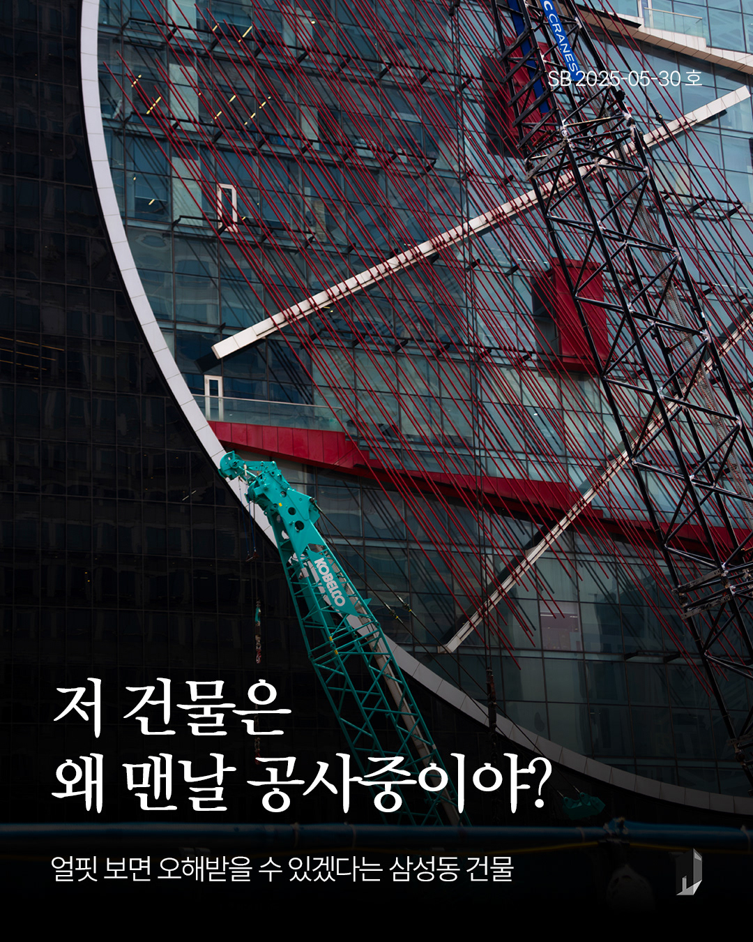 이러한 멋진 건축물이 현재 ‘오해를 받을 수도 있겠다.’라는 시선으로 제 눈에 들어왔습니다. 그것은 바로 현재 코엑스 일대가 꽤나 오랜 시간 공사를 하고 있다는 점이었는데요. 외벽의 기하학적이고 기계적인 구조물이 공사장 및 크레인과 어우러져서 얼핏 보면 공사를 진행하고 있는 건물처럼 보이겠다는 생각을 했습니다. 🤣 크레인과 꽤나 잘 어울리지 않나요?