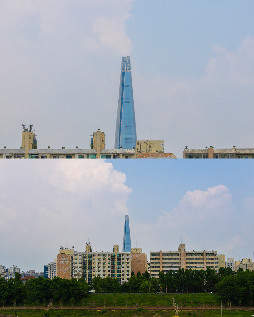 정말 너무 아쉬운 건 제가 촬영하러 갔을 때 갑자기 비가 오는 바람에 마냥 날씨가 좋지는 않았는데요. 그럼에도 개인적으로 너무 좋았던 곳이라 포기하지 않고 담아왔습니다. 사실 롯데월드타워는 남산타워같이 서울 인근 곳곳에서 굉장히 잘 보이는 랜드마크로 유명하죠.
