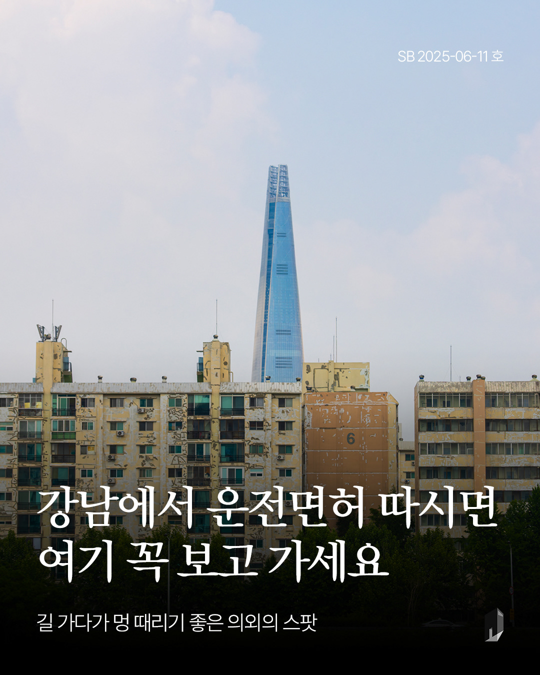 이곳은 제가 우연히 발견했던 곳인데, 강남운전면허시험장에서 시험을 보시거나 코엑스 주변에 가실 일 있어서 한 번쯤 지나가신다면 남겨 볼 만한 저만의 롯데월드타워 뷰 맛집입니다.